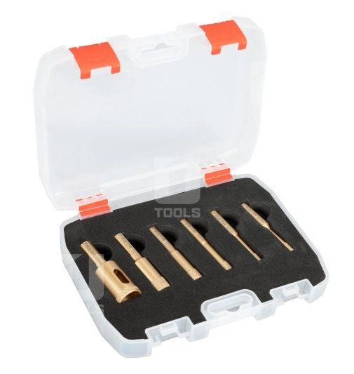 - Sada profesionálnych vrtacích diamantových koruniek so stopkou pre presné a rýchle vŕtanie do kameňa, dlažby, obkladov, žuly, mramoru a iných extrémne tvrdých materiálov nielen vo stavebníctve