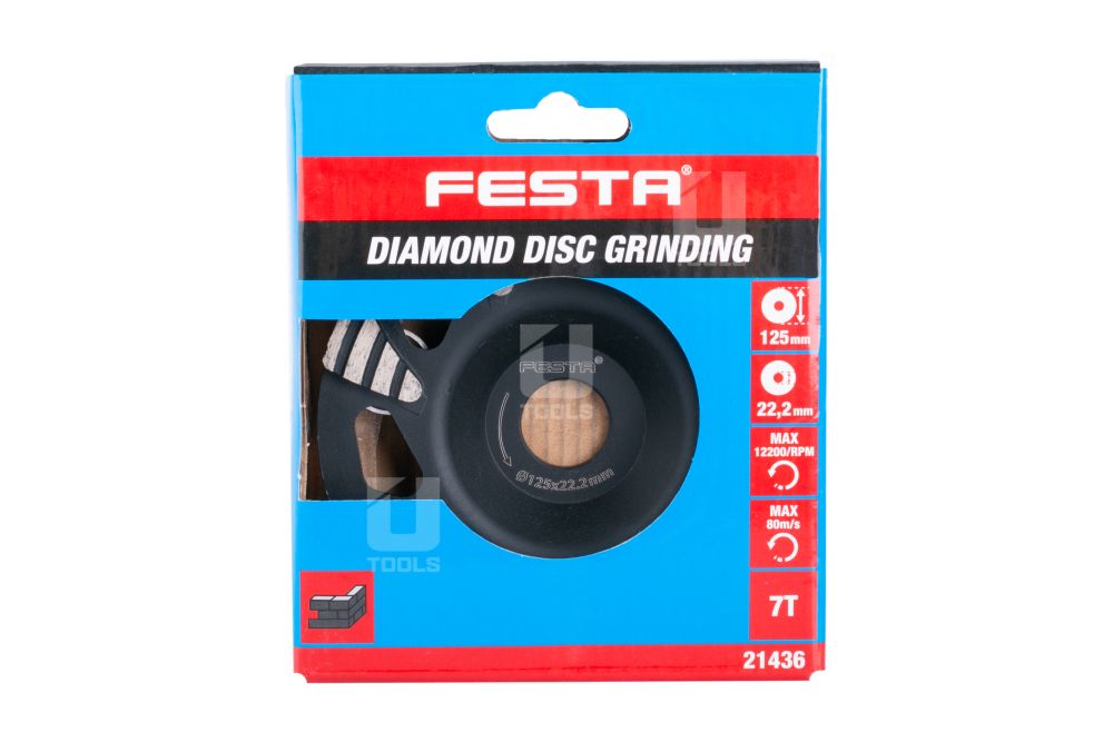 • profesionálny brúsny kotúč s diamantovými segmentami na brúsenie betónu, lepidiel a ďalších murárskych materiálov, žuly, kameňa a podobne
