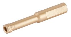 - Profesionálna vŕtacia diamantová korunka so stopkou pre presné a rýchle vŕtanie do kameňa, dlažby, obkladov, žuly, mramoru a iných extrémne tvrdých materiálov nielen vo stavebníctve