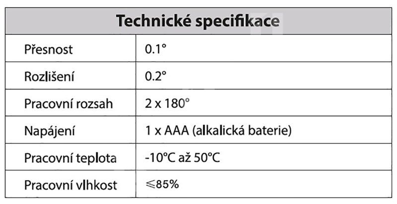 - Digitálny sklonomer, magnetický, 2×180°
