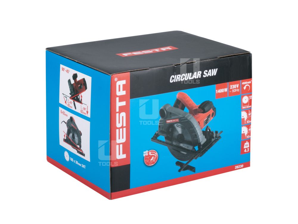 Kruhová píla s výkonom 1400 W je vhodná na priame aj šikmé rezanie dreva, lamina a ďalších doskových materiálov. Pri použití vhodného kotúča zvládne aj rezanie kovových materiálov.