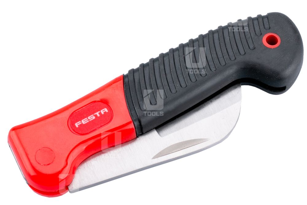 - Zatvárací elektrikársky nôž so zahnutou čepeľou,