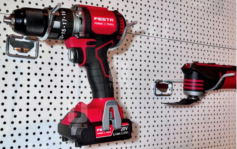 - regálový hák na zavesenie AKU alebo elektrického náradia kompatibilný so stojanmi FESTA (81011) a systémom OZAP SU 5