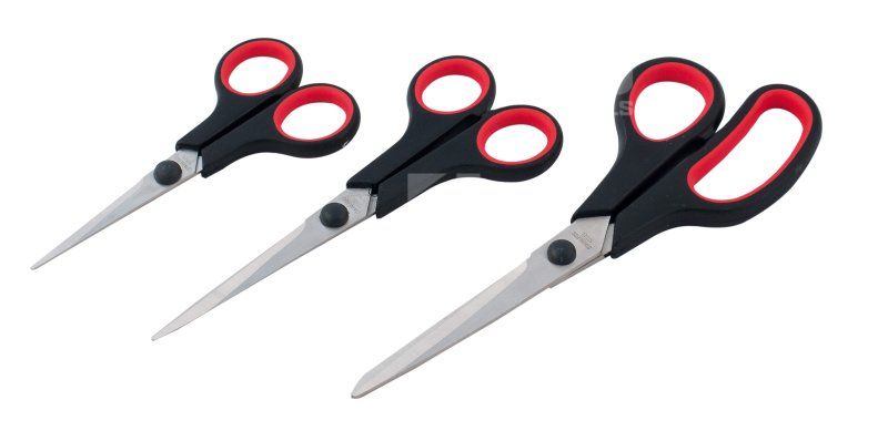 - Sada troch veľkostí dobre ergonomicky riešených nožníc, vhodných pre kancelárske a výtvarné použitie.