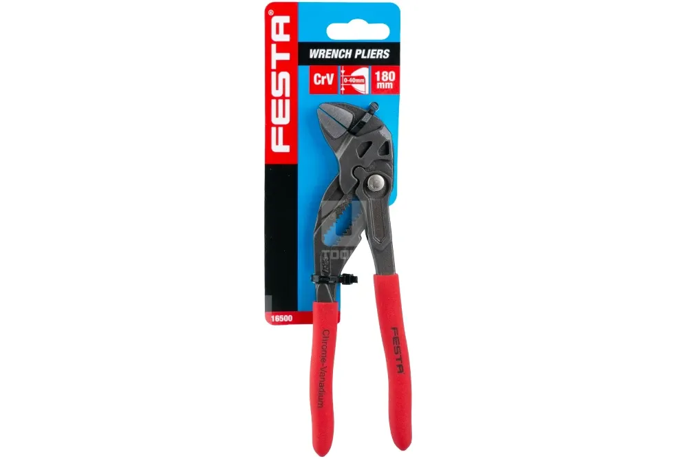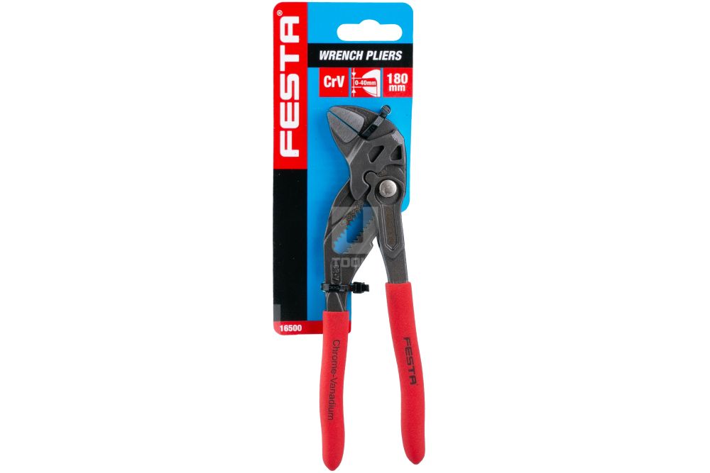 - Klieštový kľúč s plochými čeľusťami 180 mm, rozsah 0–40 mm, s tlačidlom