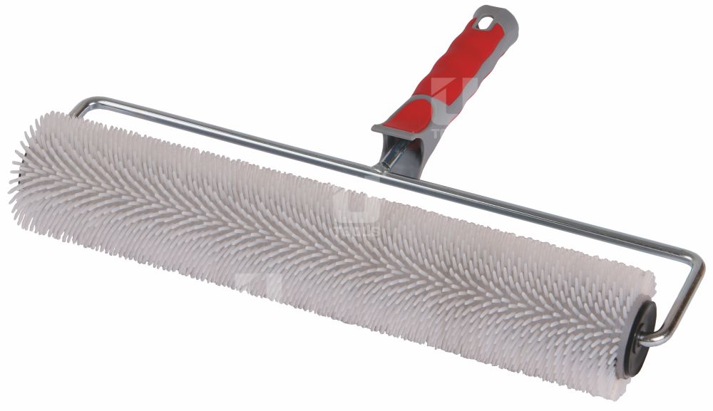 Nivelačný valček určený na odvzdušňovanie a rovnomerné rozprestieranie samonivelačných stierok a poterov po ich nanesení. Ideálny na prácu so strednovrstvovými, hrubovrstvovými a epoxidovými stierkami a potermi. Vďaka plastovým hrotom s výškou 12 mm vytvára jemné vibrácie, ktoré efektívne odstraňujú vzduchové bubliny a napomáhajú dokonalému rozliatiu po ploche a kontaktu hmoty s podkladom. Pevné plastové telo s ergonomickou pogumovanou rukoväťou zaručuje pohodlnú manipuláciu. Rukoväť je vybavená otvorom na teleskopickú tyč, čo umožňuje prácu v stoji a predĺžený dosah aj na veľkých plochách. Odstránenie vzduchu z poteru je kľúčové pre dosiahnutie hladkej, trvácnej a estetickej povrchovej úpravy.