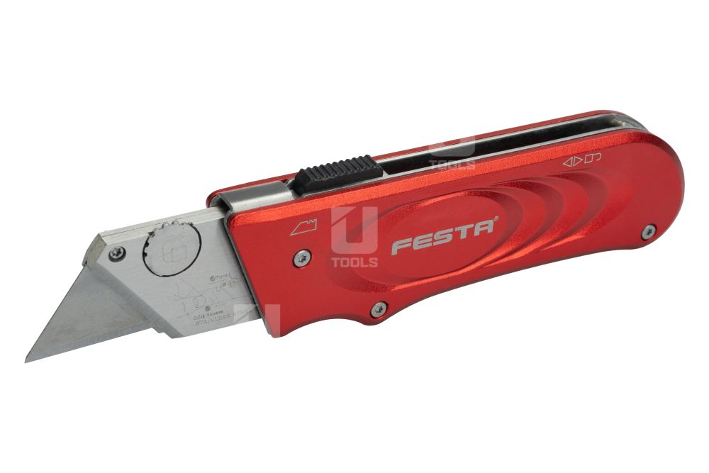 - vysúvacia lichobežníková čepeľ s aretačným tlačidlom