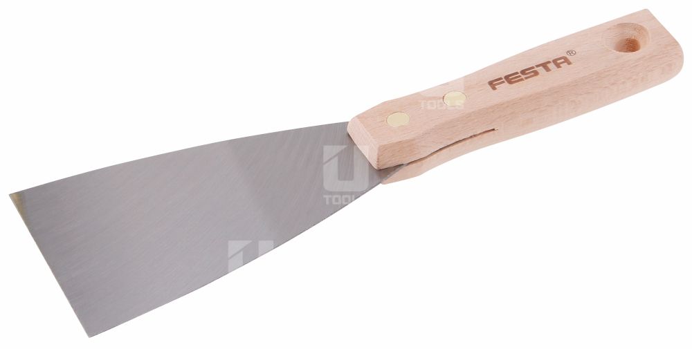 - maliarska stierka (špachtľa) s brúseným oceľovým rezom a s drevenou nitovanou rukoväťou