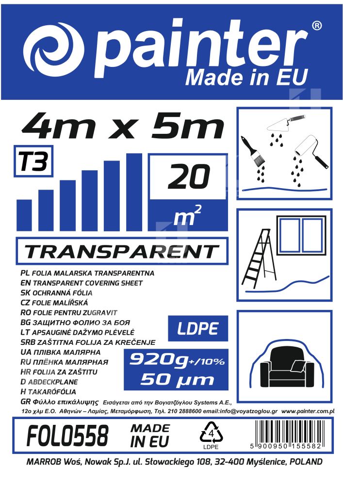 - Ochranná fólia 4x5m 920g 50um transparentná