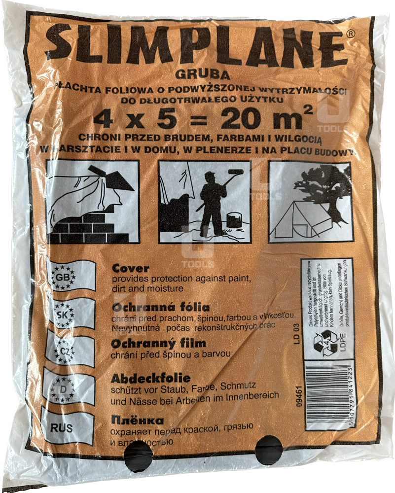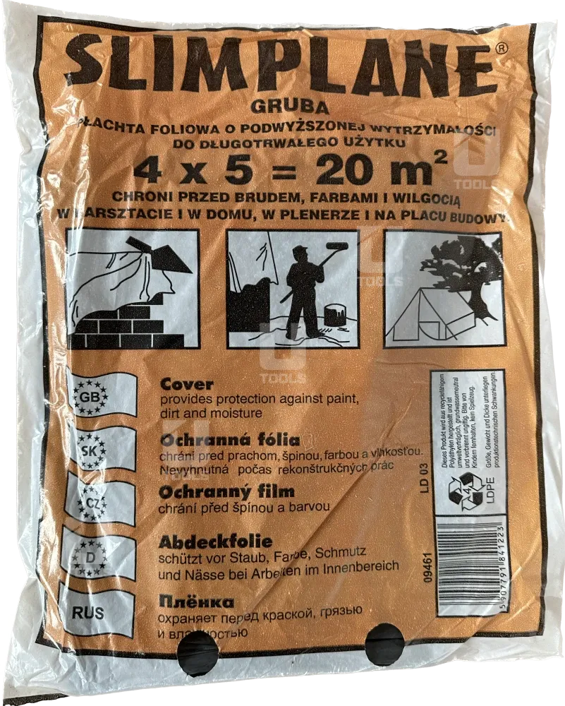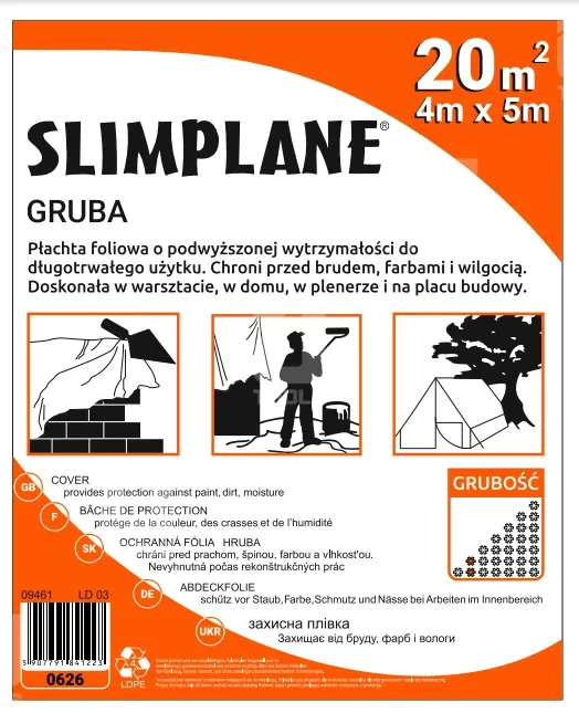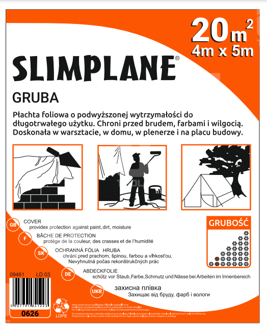 Fólia vyrobená z vysokohustotného polyetylénu (HDPE) zabezpečuje efektívnu ochranu podláh, nábytku, stien či strojov počas stavebných, rekonštrukčných alebo maliarskych prác.