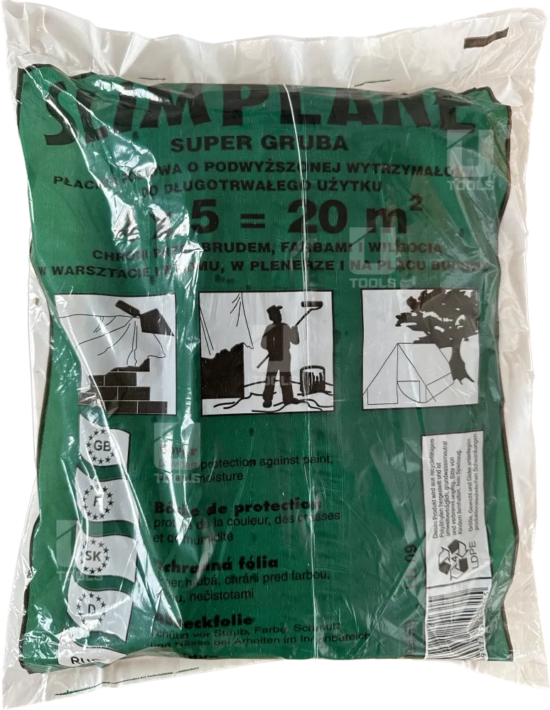 Fólia vyrobená z vysokohustotného polyetylénu (HDPE) zabezpečuje efektívnu ochranu podláh, nábytku, stien či strojov počas stavebných, rekonštrukčných alebo maliarskych prác.