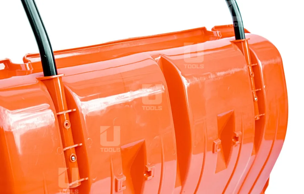 Súčasťou sú kolieska, ktoré uľahčujú presúvanie snehu a znižujú námahu pri práci.