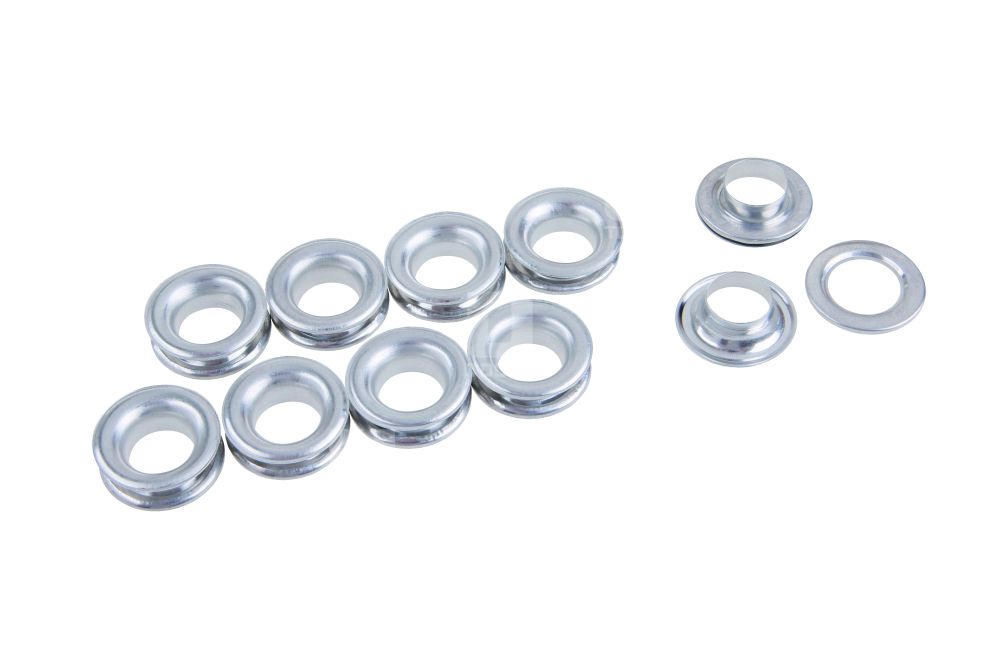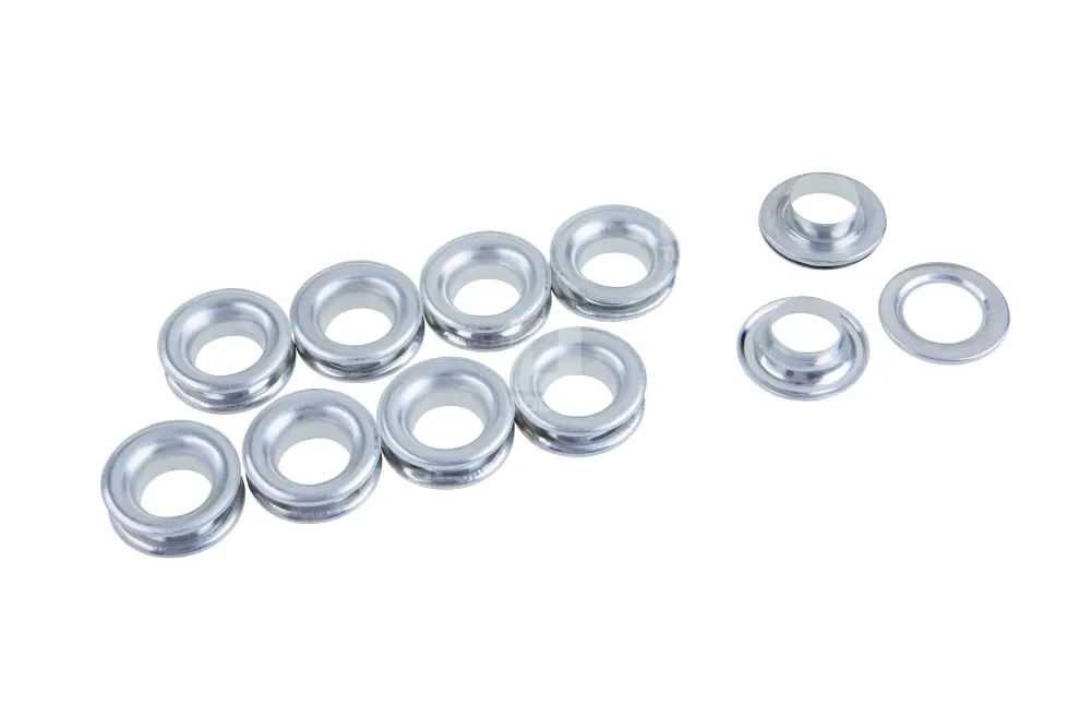 Sada náhradných očiek určená na opravu alebo dodatočné uchytenie zakrývacích PE plachiet a podobných materiálov, ako sú fólie, celty či textílie. Pomáhajú spevniť uchytenie a znižujú riziko pretrhnutia materiálu.