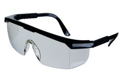 - číre ochranné okuliare s polykarbonátovými nastaviteľnými straničkami a zorníkom, CE EN 166