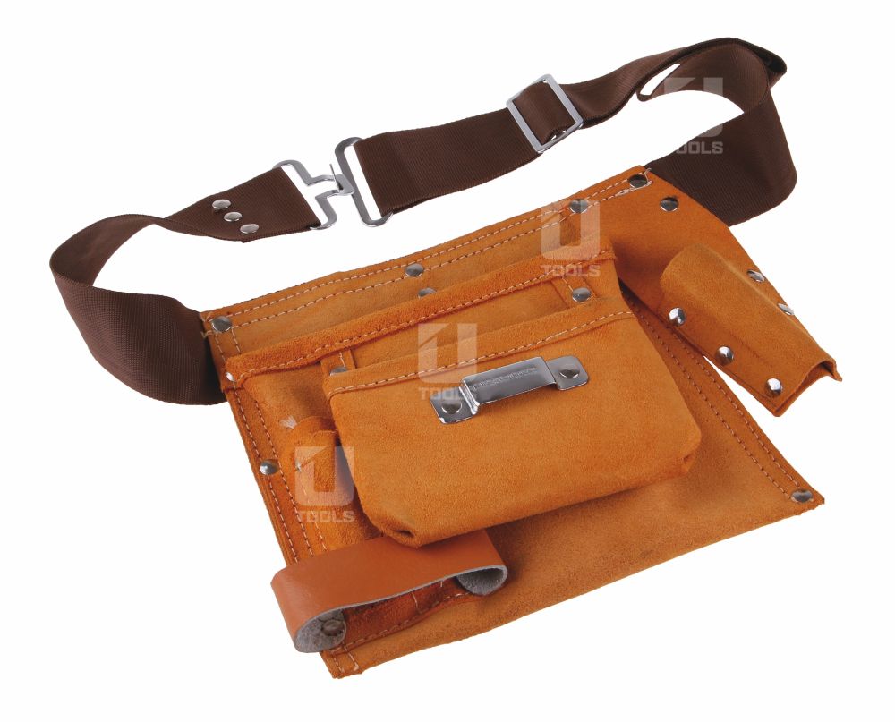 - Náradový pás, PROFI - kvalitná silná koža aj spracovanie - švy, 6 vreciek, koža / nylon