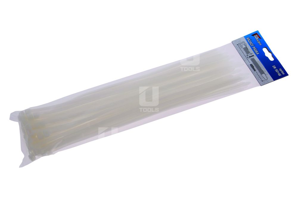 Sťahovacie pásky, 400×7,6 mm, biele, 50 ks |
