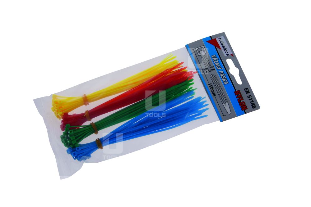 - Sťahovacie pásky, 150×2,5 mm, farebné, 100 ks