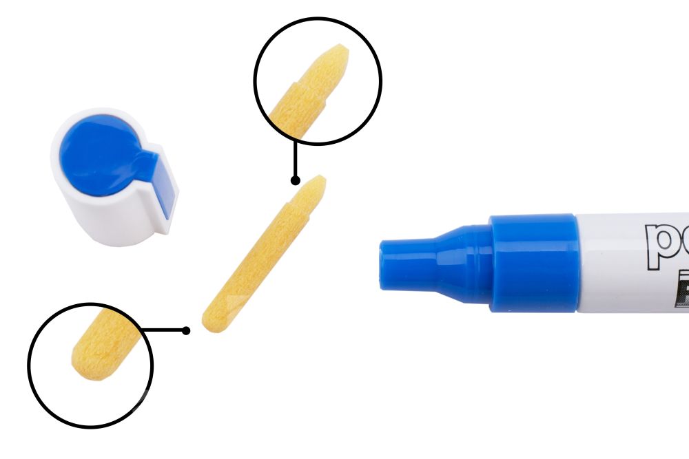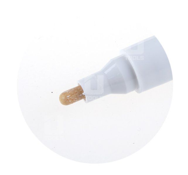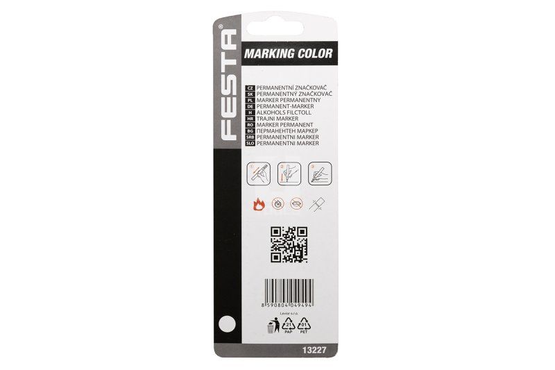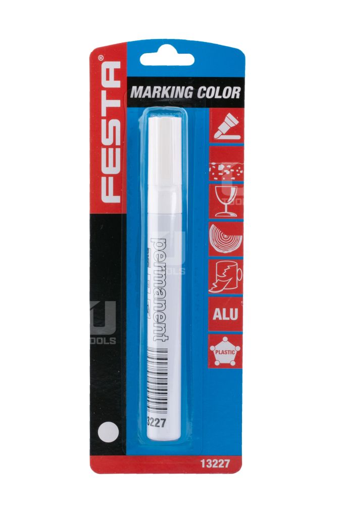 Špeciálna značkovacia farba v odolnom hliníkovom puzdre je vhodná na popisovanie železných konštrukcií, skla, plastov, čiernych strečových fólií a ďalších tmavých podkladov.