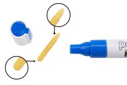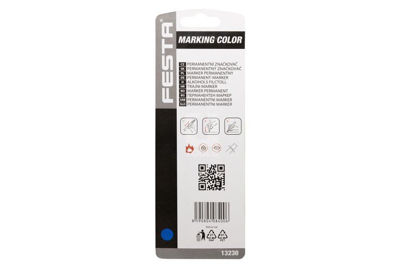 Špeciálna značkovacia farba v odolnom hliníkovom puzdre je vhodná na popisovanie železných konštrukcií, skla, plastov, čiernych strečových fólií a ďalších tmavých podkladov.