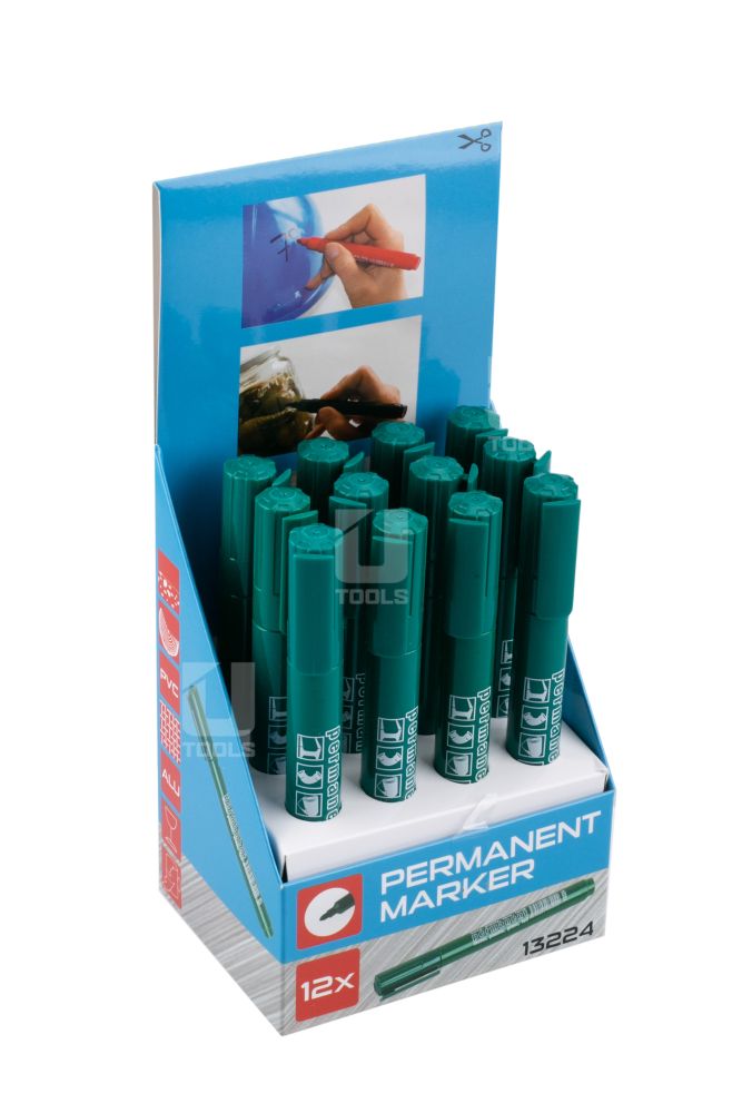 Permanentný značkovač na báze liehu s okrúhlym hrotom je vhodný na popisovanie širokej škály materiálov, ako je papier, kartón, plast, sklo, kov či fólie.