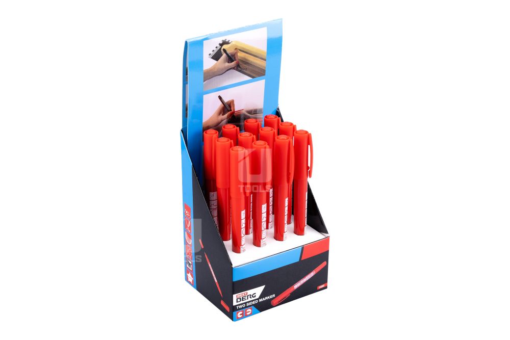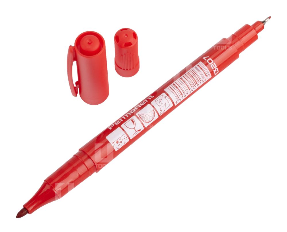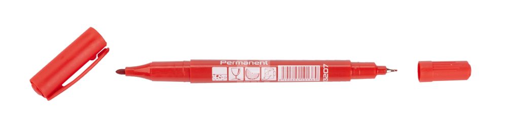 Permanentný značkovač v obojstrannom prevedení ponúka tenký hrot 0,5 mm pre presné rysovanie a širší hrot 1 – 3 mm pre bežné popisovanie.