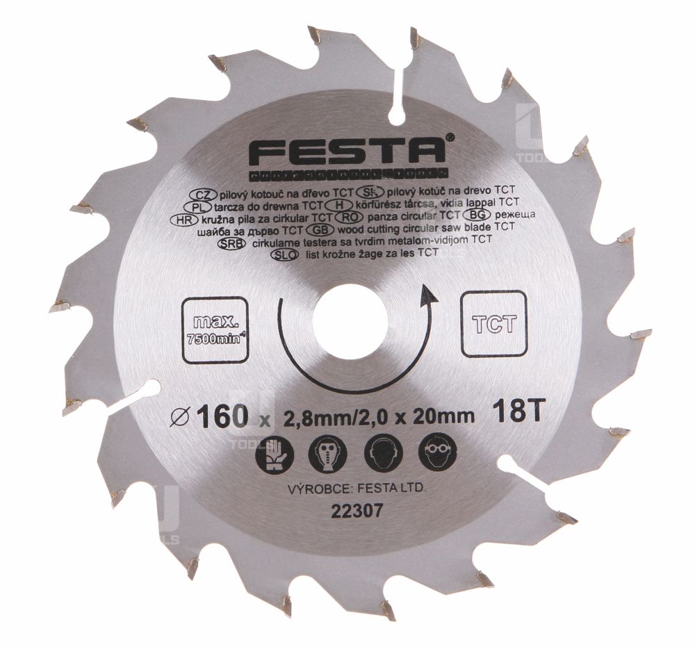 - Pílový kotúč do dreva TCT 160x2,8x20mm 18 zubov