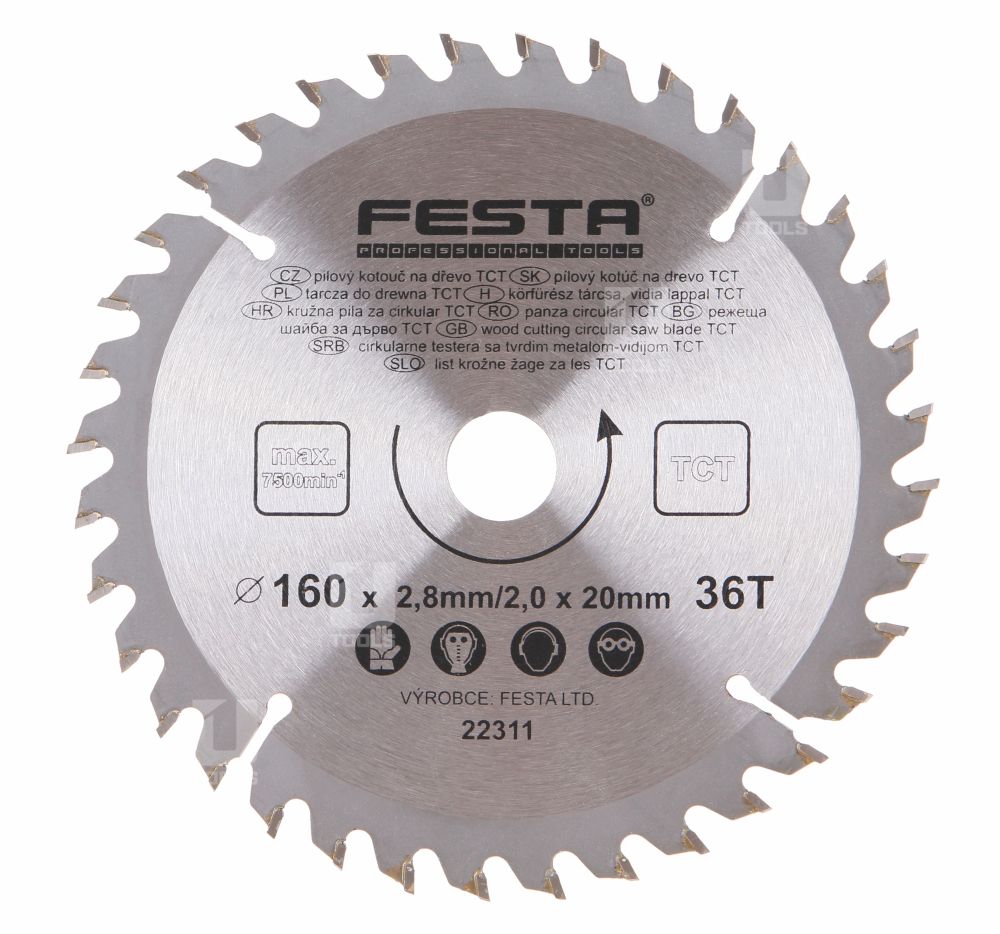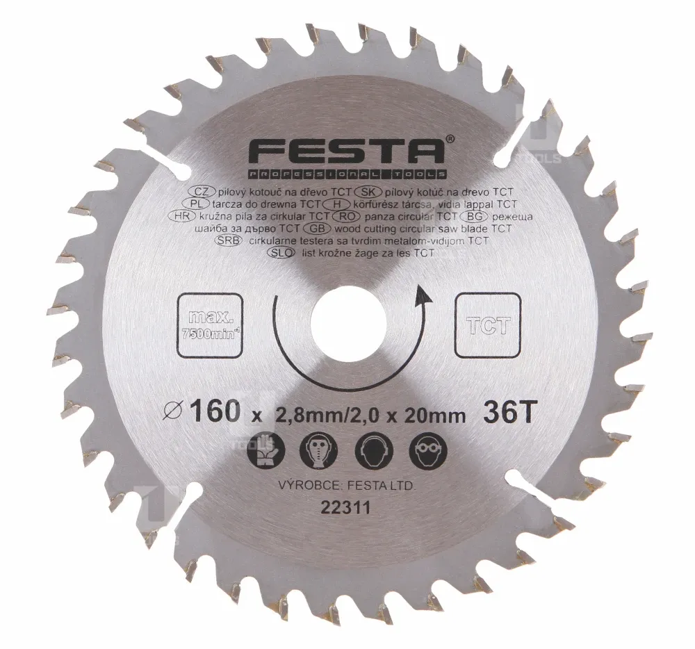 - Pílový kotúč do dreva TCT 160x2,8x20mm 36 zubov