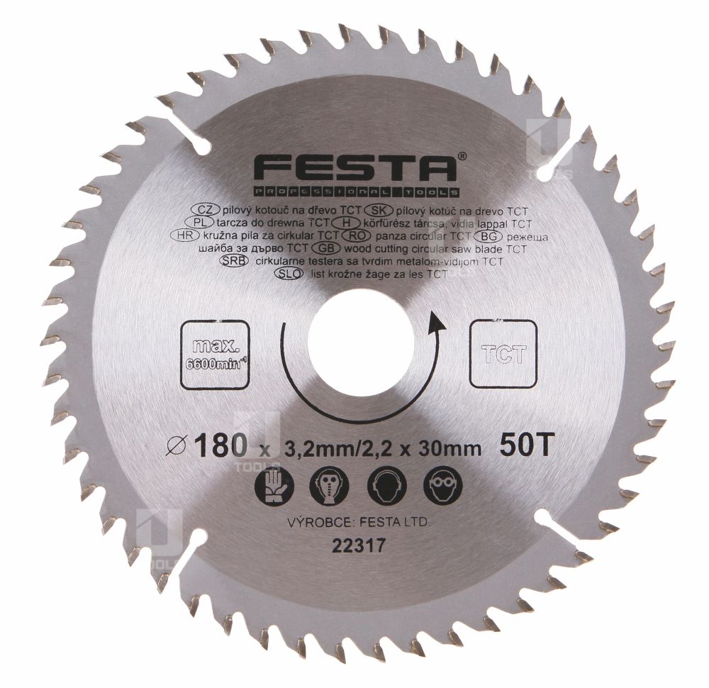 - Pílový kotúč do dreva TCT 180x3,2x30mm 50 zubov