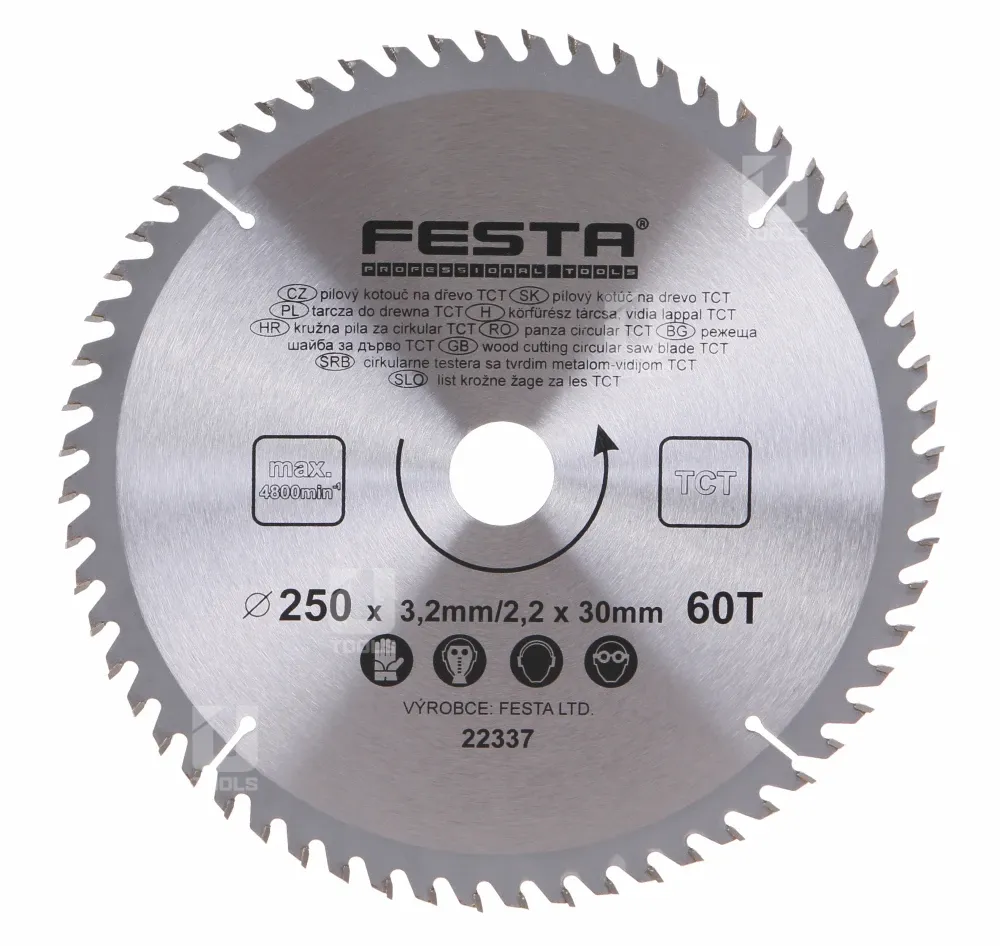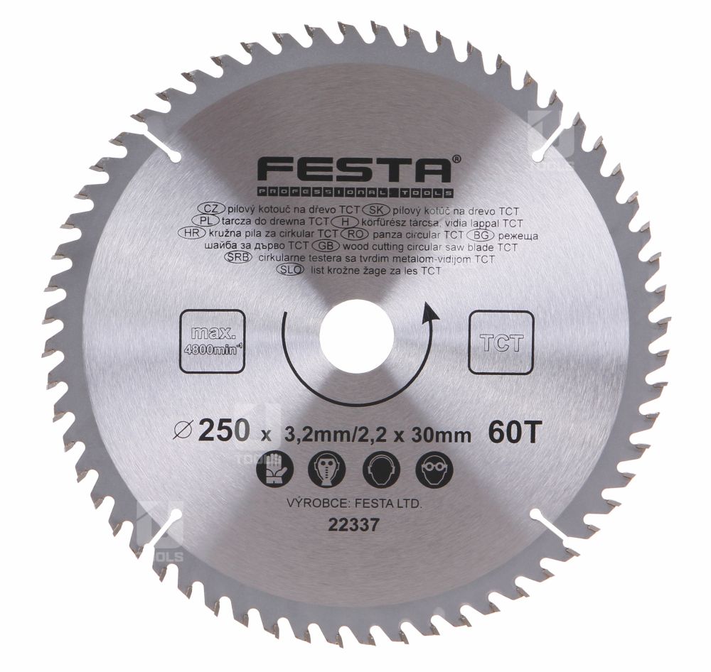 - Pílový kotúč do dreva TCT 250x3,2x30mm 60 zubov