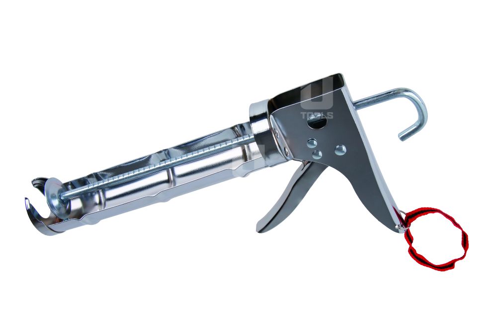 - Vytláčacia pištoľ na tmel chróm, polouzavretá, ozubený posun