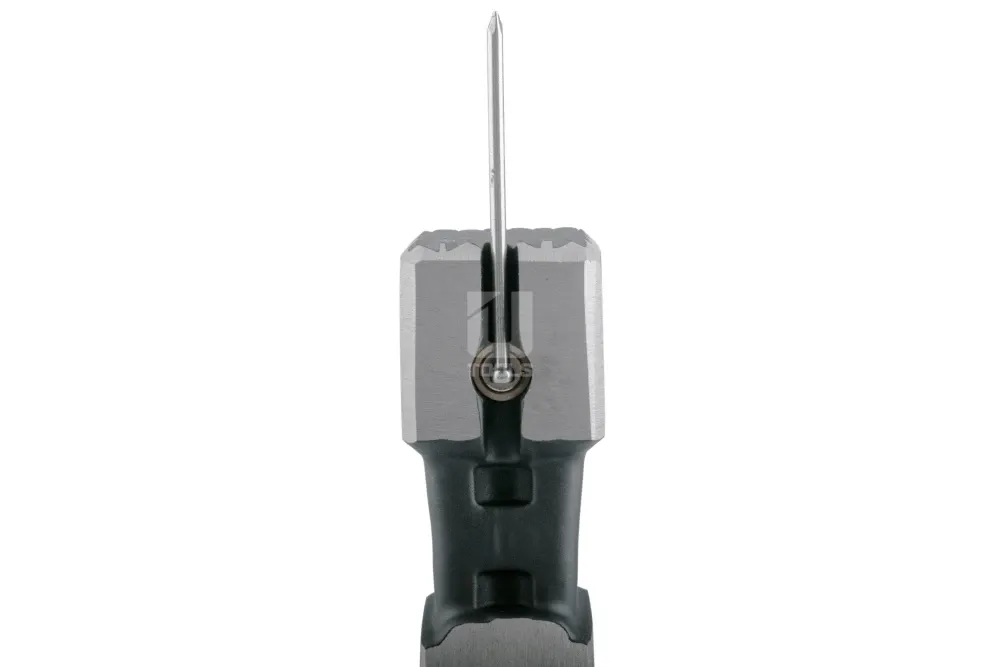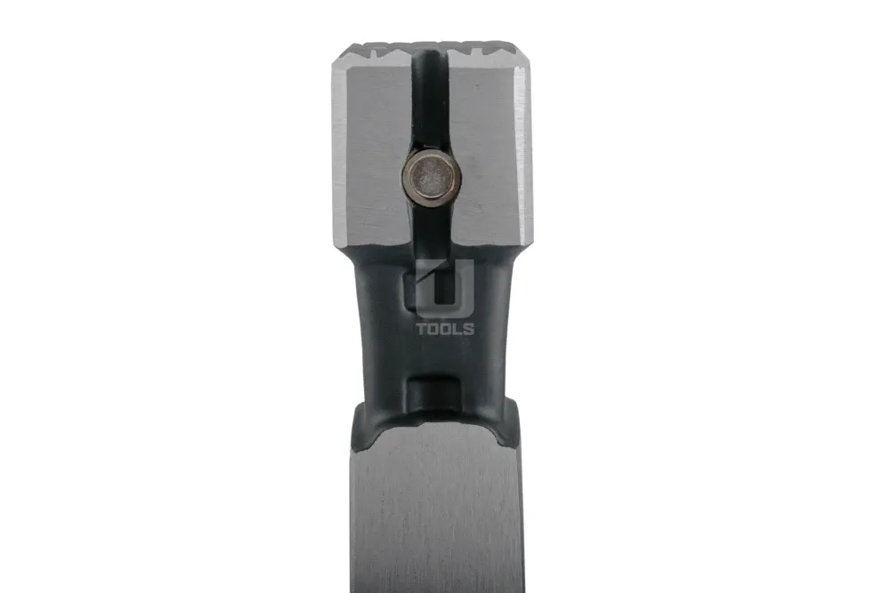 - oceľová hlava kladiva má zárez so silným magnetom na udržanie klinca, vyťahovač klincov a zdrsnenú úderovú plochu kladiva