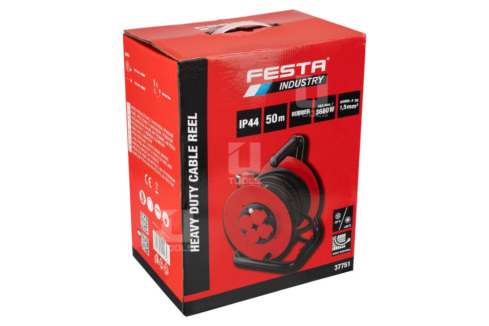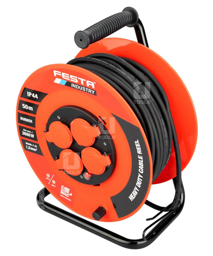 Predlžovací kábel na bubne 50 m, 4 zásuvky, guma, IP44, 230 V, 1,5 mm2