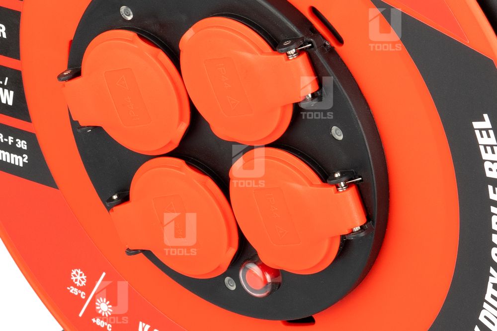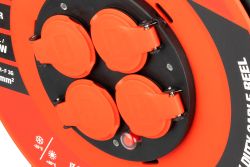 Predlžovací kábel na bubne 25 m, 4 zásuvky, guma, IP44, 230 V, 1,5 mm2