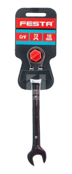 Račňový kľúč s kĺbom, CrV, 72 zubov, 16 mm |