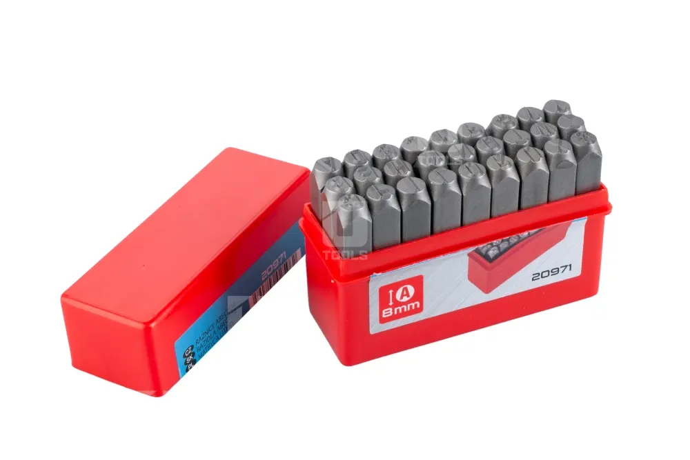 - Ručné razidlo - písmená abecedy, kvalitná uhlíková oceľ - pevnosť do 800 N/mm2
