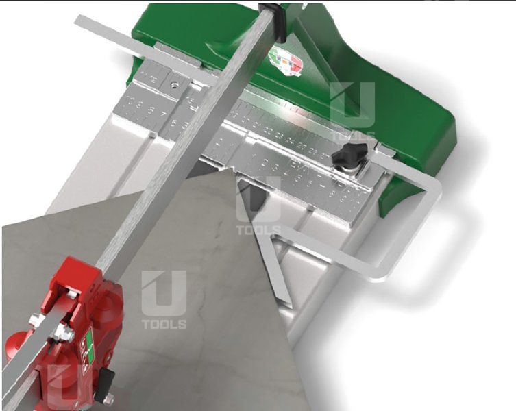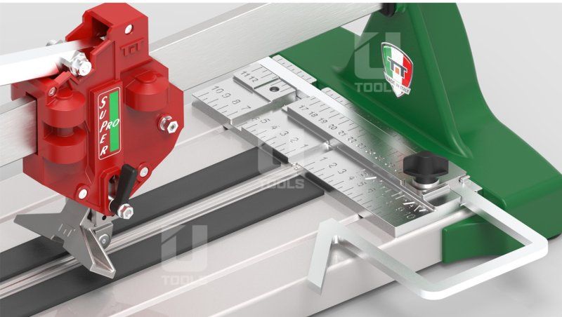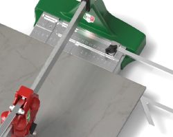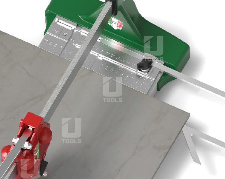 - špeciálne pravítko s dvoma stupnicami v cm a dorazom upraveným aj pre diagonálne rezy - 45° (dlaždice max 880 mm)