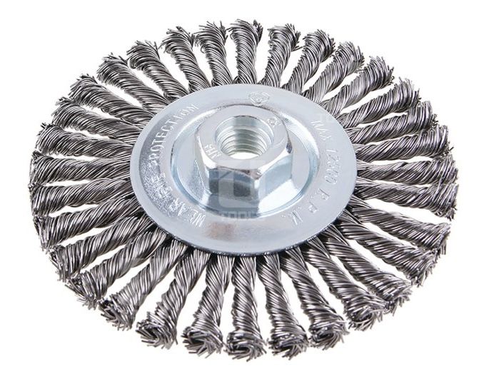 - Rotačná kefa radiálna, vrkočová, oceľová, M14, 32 vrkočov, 115 mm