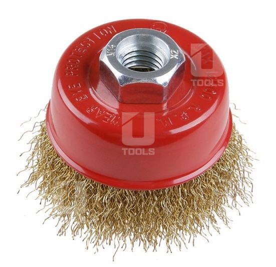 Rotačná kefa hrncová, vlnitá, pomosadzená, M14, 85 mm |