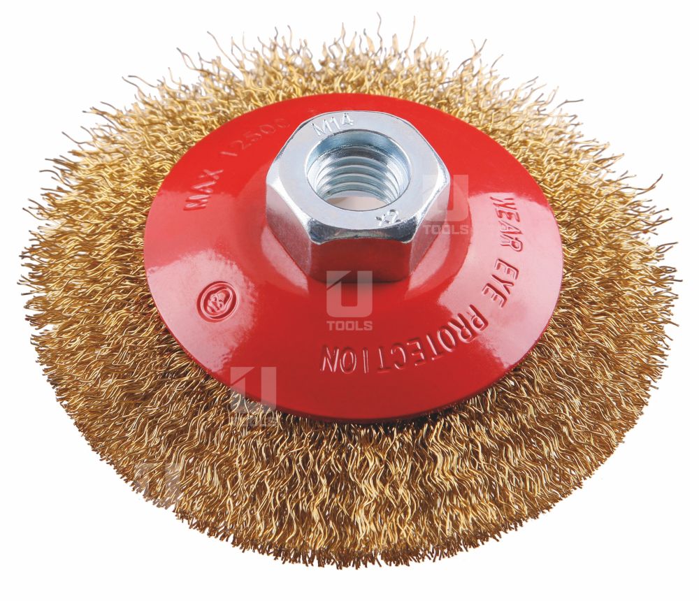- Rotačná kefa misková, vlnitá, pomosadzená, M14, 100×10 mm