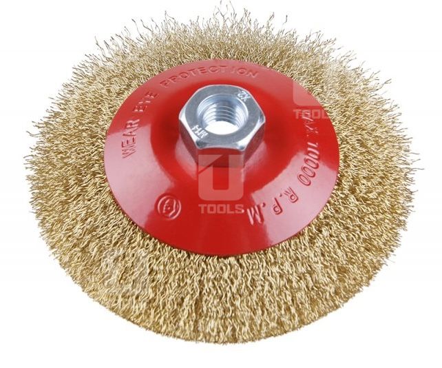 Určená na leštenie a efektívne odstraňovanie hrdze, farby a nečistôt z kovových povrchov. Vlnité pomosadzené drôty zabezpečujú dôkladné, no šetrné čistenie bez poškodenia podkladu.