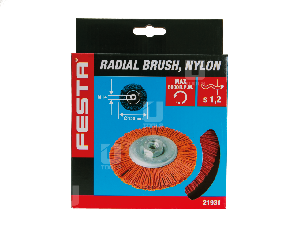 Rotačná kefa radiálna, vlnitá, nylonová, M14, 150 mm