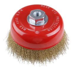 Rotačná kefa hrncová, vlnitá, pomosadzená, M14, 100 mm |