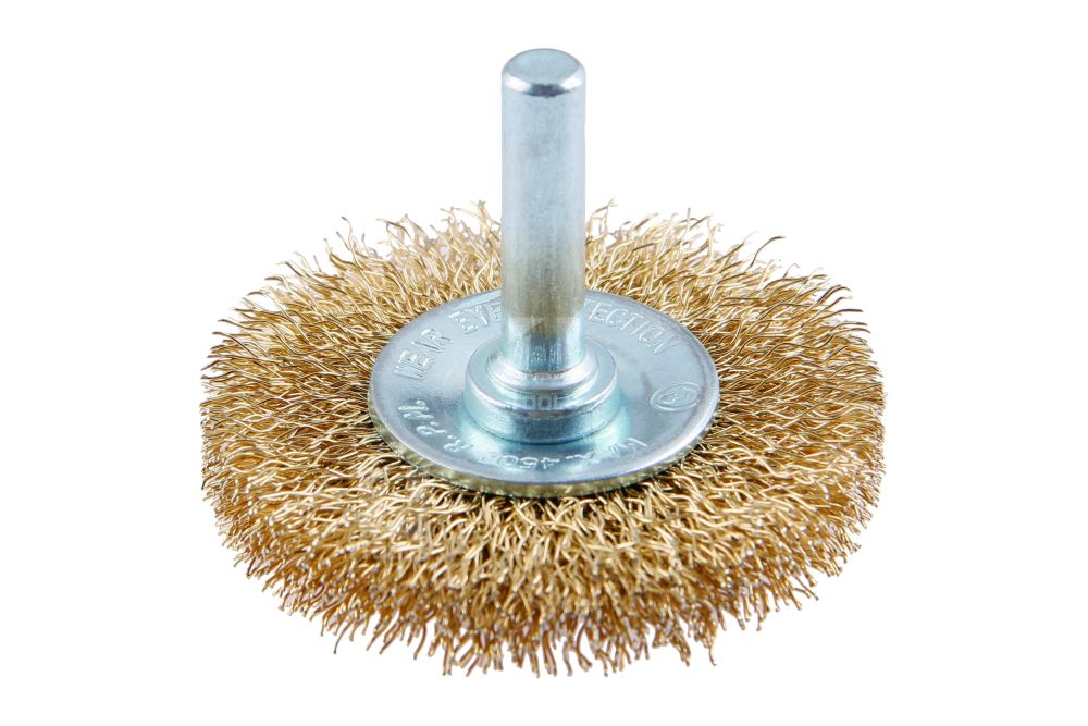 Rotačná kefa radiálna, vlnitá, pomosadzená, stopka, 63 mm