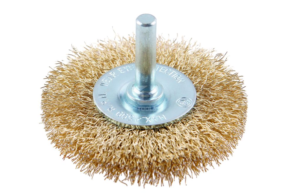 Rotačná kefa radiálna, vlnitá, pomosadzená, stopka, 63 mm |