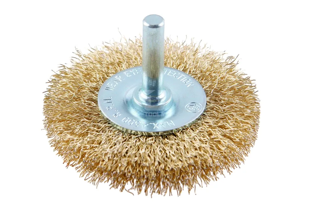 - Rotačná kefa radiálna, vlnitá, pomosadzená, stopka, 63 mm