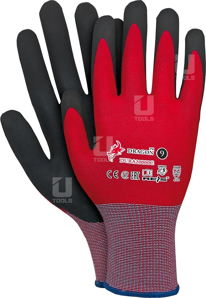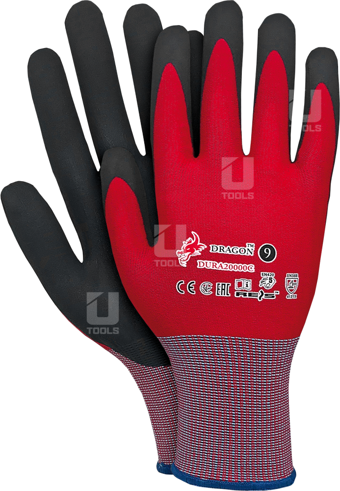 Vyrobené z nylonovo-elastanovej pleteniny s hustým očkom, ktorá sa výborne prispôsobí ruke. Dlaň je povlečená speneným nitrilom typu FOAM, ktorý kombinuje veľmi dobrú priľnavosť s odolnosťou voči olejom a mastnote. Rukavice sú mimoriadne odolné proti oderu – zvládnu viac než 20 000 cyklov, čo ich radí medzi najodolnejšie vo svojej kategórii. Ukončené pružným sťahovacím lemom pre stabilné nosenie.