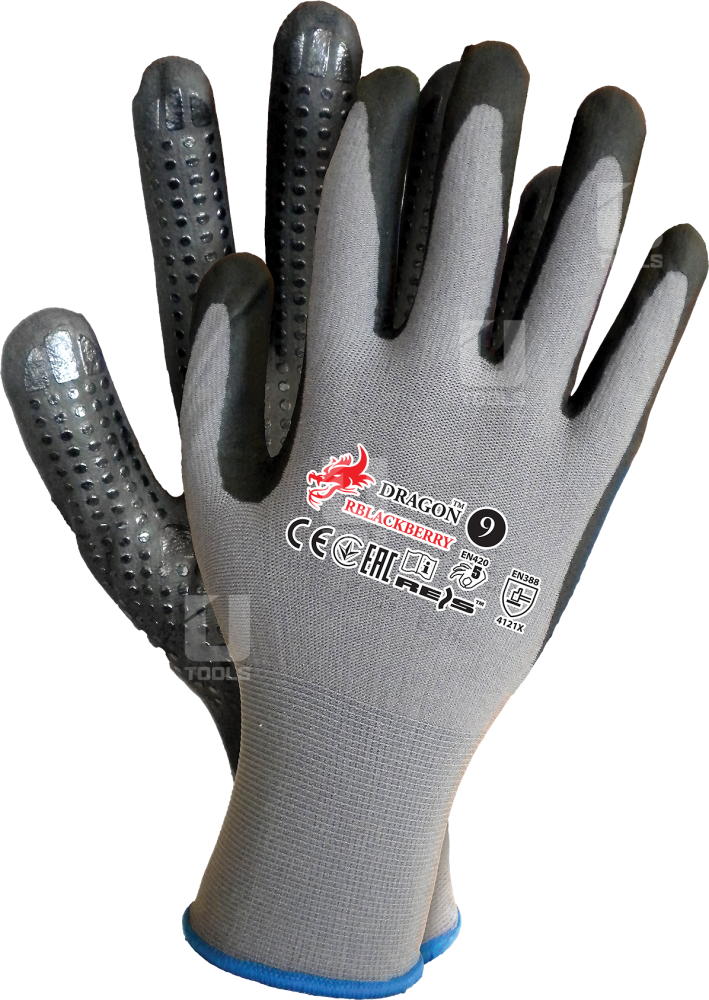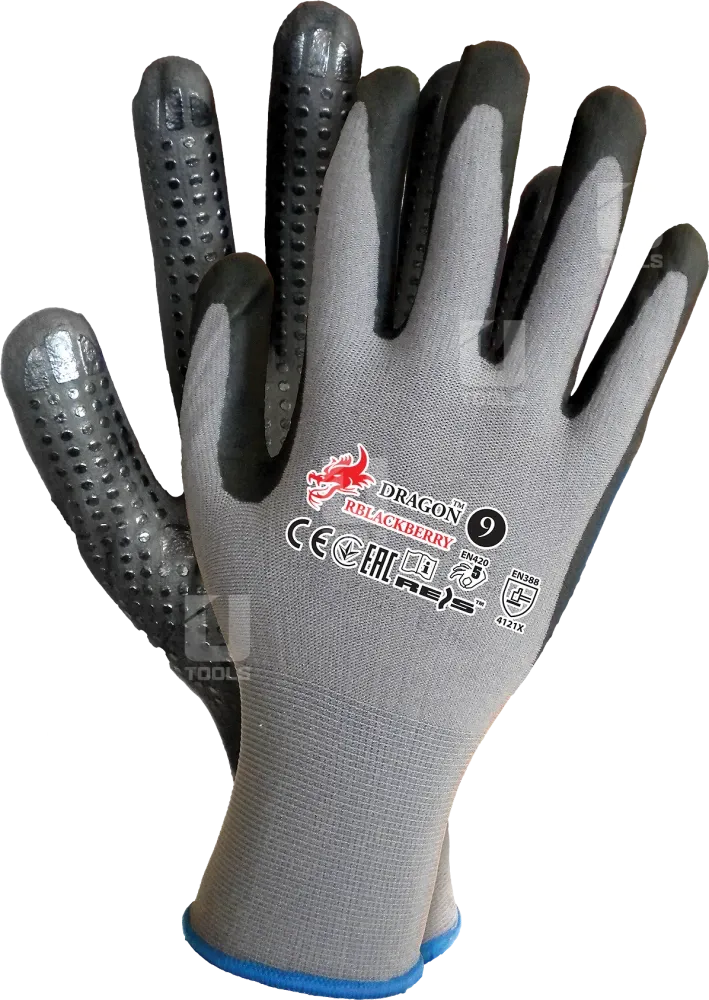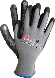 Vyrobené z kombinácie nylonu a elastanu, potiahnuté ultra tenkou vrstvou penového nitrilu FOAM s dodatočným bodkovaním z nitrilu. Poskytujú zvýšenú odolnosť proti oderu a pretrhnutiu, vynikajúcu manuálnu citlivosť a presné uchopenie predmetov. Nitryl zvyšuje odolnosť proti olejom a mastnotám, čo robí rukavice vhodnými na mechanické práce s kontaktom s týmito látkami.