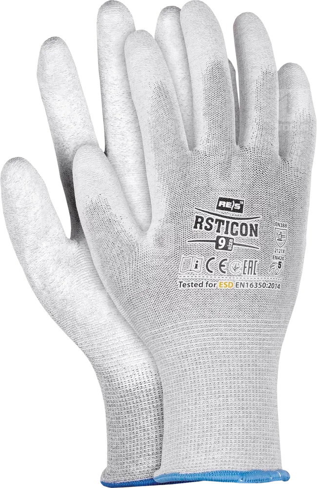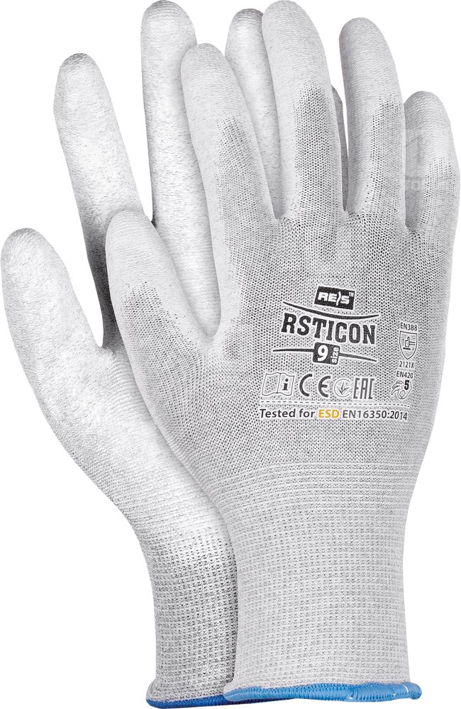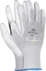 Vyrobené z polyesterovo-karbónovej priadze, dlaň povrstvená polyuretánom. Rukavice sú zakončené elastickou manžetou, ktorá zaisťuje pohodlné a stabilné uchytenie rukavice na ruke. Ideálne na precíznu prácu v elektronickom priemysle, zároveň poskytujú odolnosť proti oderu a opotrebovaniu.