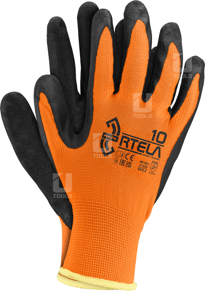 Vyrobené z polyesteru a potiahnuté latexom s chropovitou štruktúrou, ktorá zaručuje výborný úchop bez tuhnutia rukavice. Sú odolné voči oderu a roztrhnutiu, pritom tenké a pružné, takže sa výborne prispôsobia tvaru ruky. Rukavice si zachovávajú tvar aj pri kontakte s vodou a poskytujú vysokú manuálnu citlivosť pri obmedzení skĺzavania uchopeného predmetu.