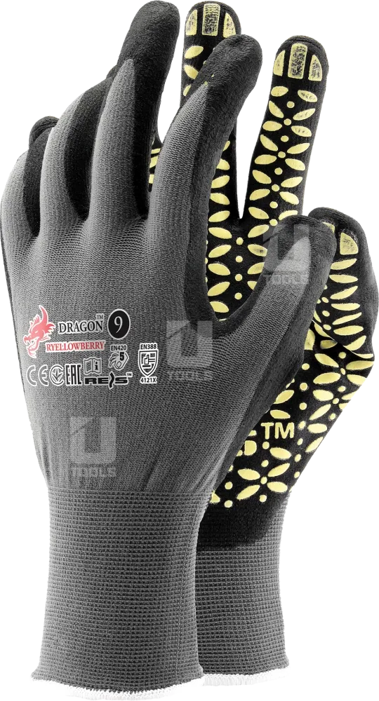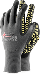 Vyrobené z kombinácie nylonu a elastanu, potiahnuté ultra tenkou vrstvou penového nitrilu FOAM s dodatočným bodkovaním z nitrilu. Poskytujú zvýšenú odolnosť proti oderu a pretrhnutiu, vynikajúcu manuálnu citlivosť a presné uchopenie predmetov. Nitryl zvyšuje odolnosť proti olejom a mastnotám, čo robí rukavice vhodnými na mechanické práce s kontaktom s týmito látkami.